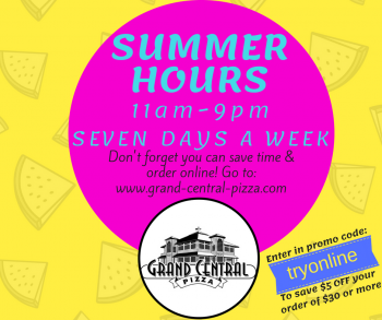 Summer Hours! 11:00am-9 pm, 7 Days a week!!